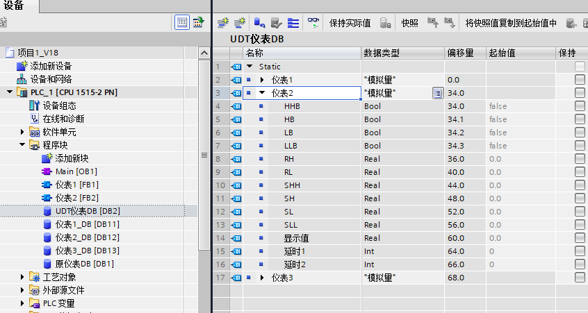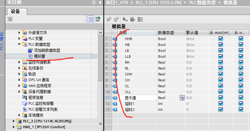 第一步,在博途的數據類型中添加一個“模擬量”的新數據類型,并添加好它的條目。其實就是把原FB塊的管腳整體復制過來就行,最后注意更改每條數據的類型。