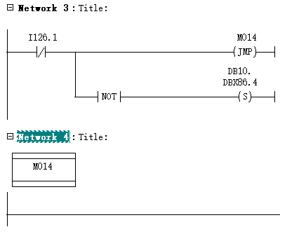 含義:若上一步的運算結果為 “1”(即 I 126.1 為 “0”),則跳轉到標簽 “M014” 對應的程序段。