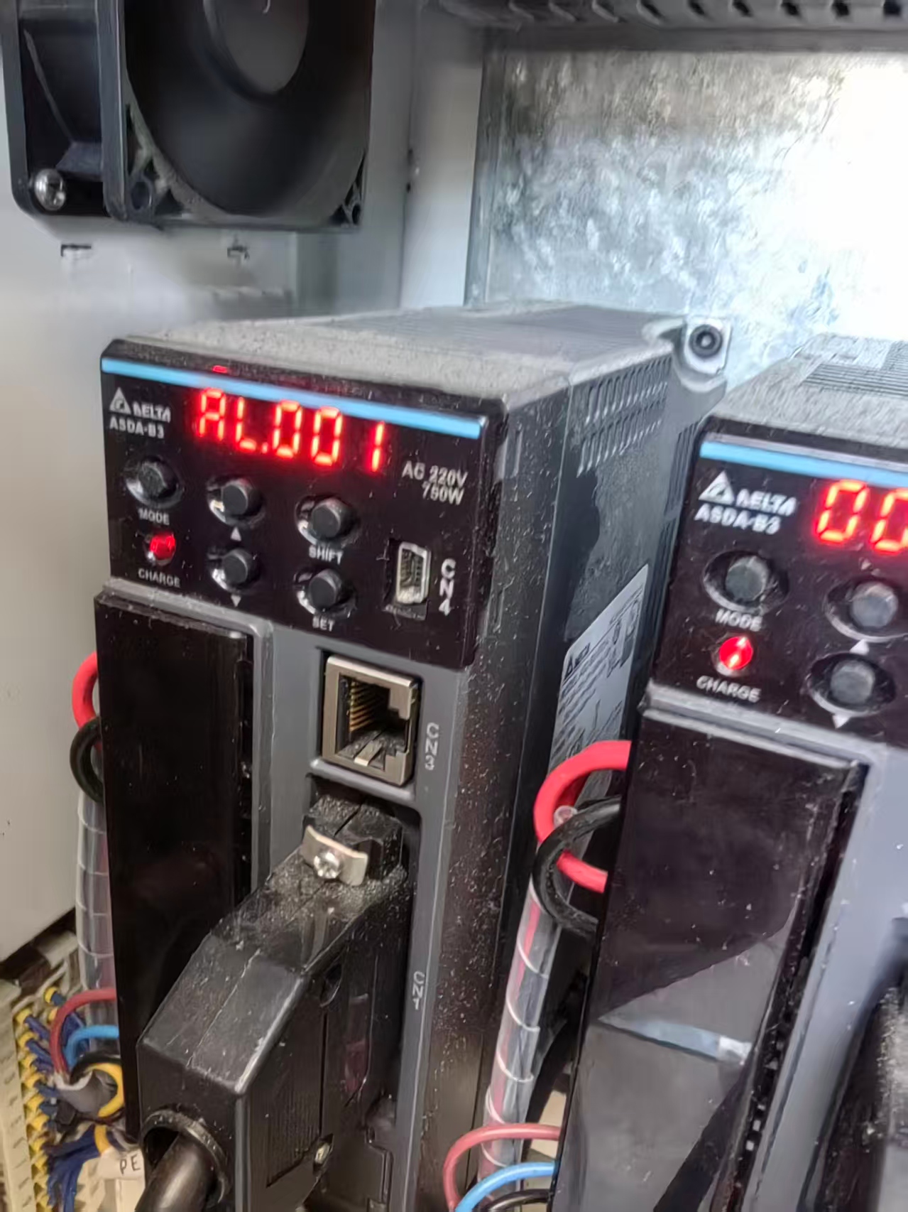 臺達伺服控制器控制一個軸水平運動。機器用了好幾年,近幾天,每天都有出現AL.001報警,查手冊,顯示過電流。目前沒有找到原因。檢查了線纜。聯軸器等,暫沒發現問題。望大佬指點思路對策。