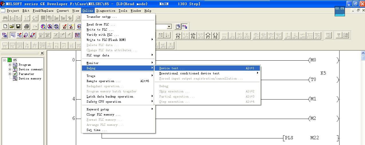 強制ON/OFF可以通過軟元件測試工具窗口操作