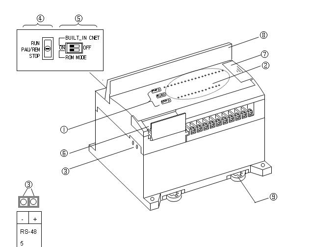 如圖,查看你PLC的Cnet的開(kāi)關(guān)狀態(tài)。如果Cnet為On,就用你那種通訊線的做法,如果還連接不上。可以試試把Cnet開(kāi)關(guān)撥到Off,然后再用