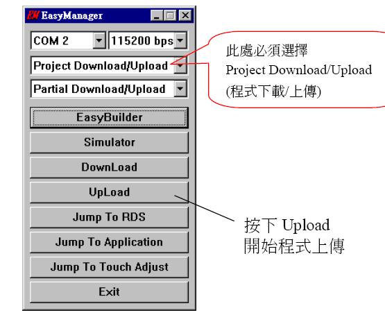 初次使用EB500軟件,連好了編程線,怎么操作才能讀出程序,上傳呢。