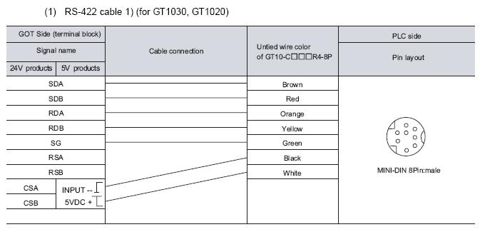 三菱GT1020-LBL-C觸摸屏跟三菱FX2N系列PLC的通訊線的接線圖是怎樣接的????