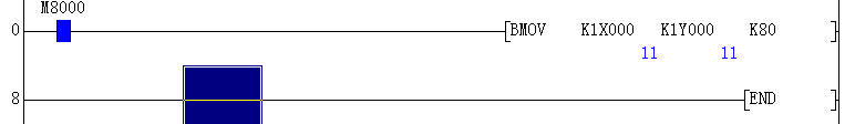 程序應該這樣就OK了.       LD8000  BMOV  K1X0  K1Y0 K80