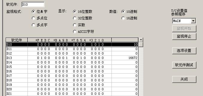 不是,那個監視表格里D13怎么是16672的,D12為0,為什么啊???我今天突然來了想法,就是想來看看浮點這個東西,練練,所以就亂編一個程序,請問一下,那浮點可以只顯示小數點后1位,或2位,不要3位嗎???