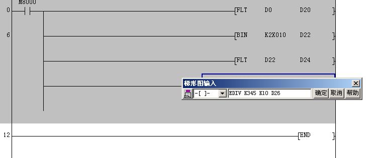 我照著書上的梯形圖想自己輸一遍,EDIV這個指令竟然不能輸入,