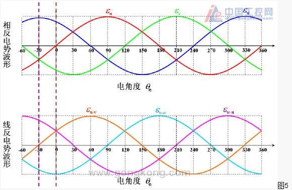 1.以上討論中,所謂對齊到電機電角度的-30度相位的提法,是以UV反電勢波形滯后于U相30度的前提為條件。