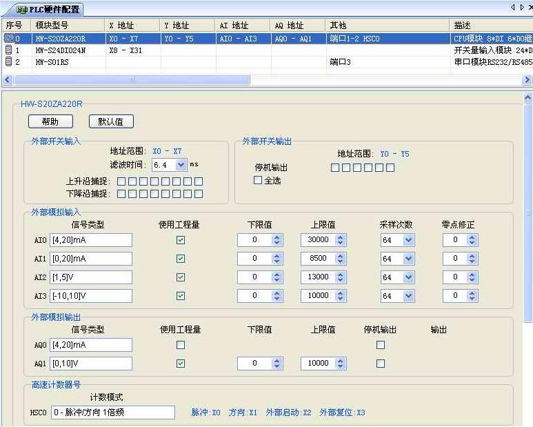 4、HW-S20ZA220T:8xDI,6xDO晶體管,4xAI線性輸入,2xAO線性輸出,