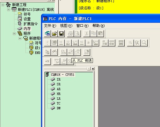 我司有一設備采用CQM1H電腦,想改一下程式,把PLC程式傳上來,卻不知道如何上傳DM中數據,結果把程式傳入PLC中DM中數據全為零,也就是觸摸屏中數值為零,請教各位如何操作,還有I/O表如何傳上來,謝謝!