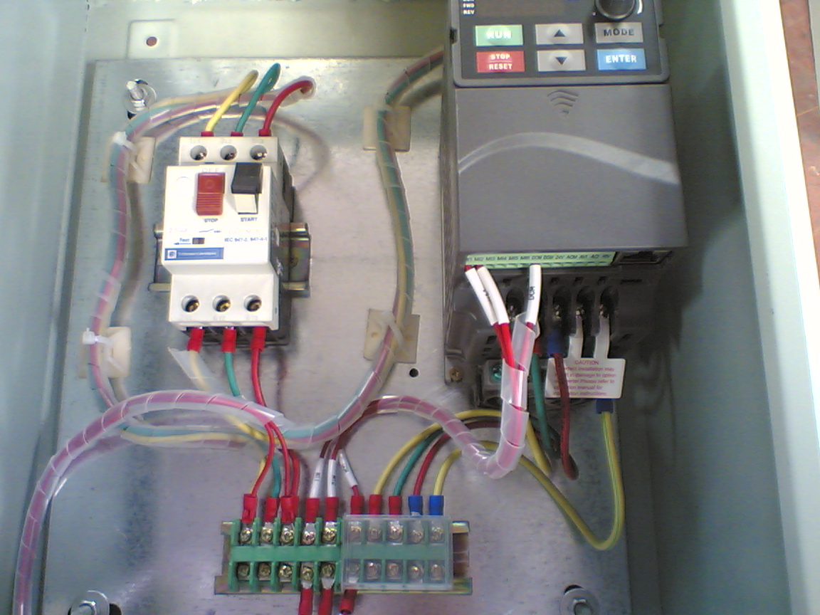用了一個施耐德的電機斷路器,一個臺達的變頻器VFD015E43A