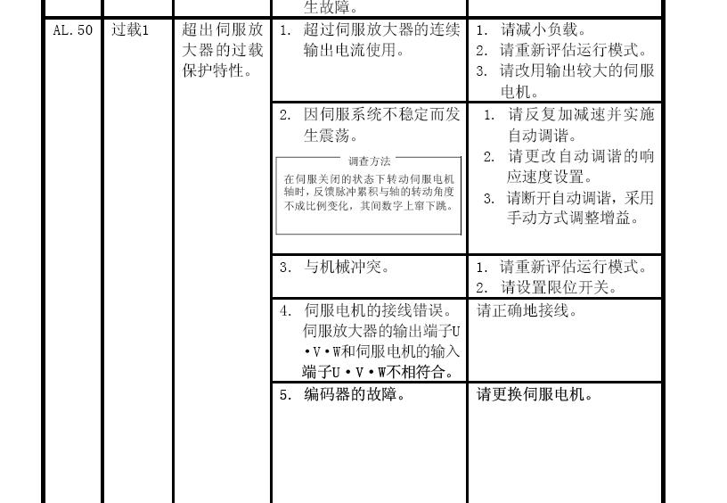 具體內容是故障AL.50 (過載1)       AL.51(過載2)本人附上圖片兩張你看一下。具體內容還是要查閱說明書。