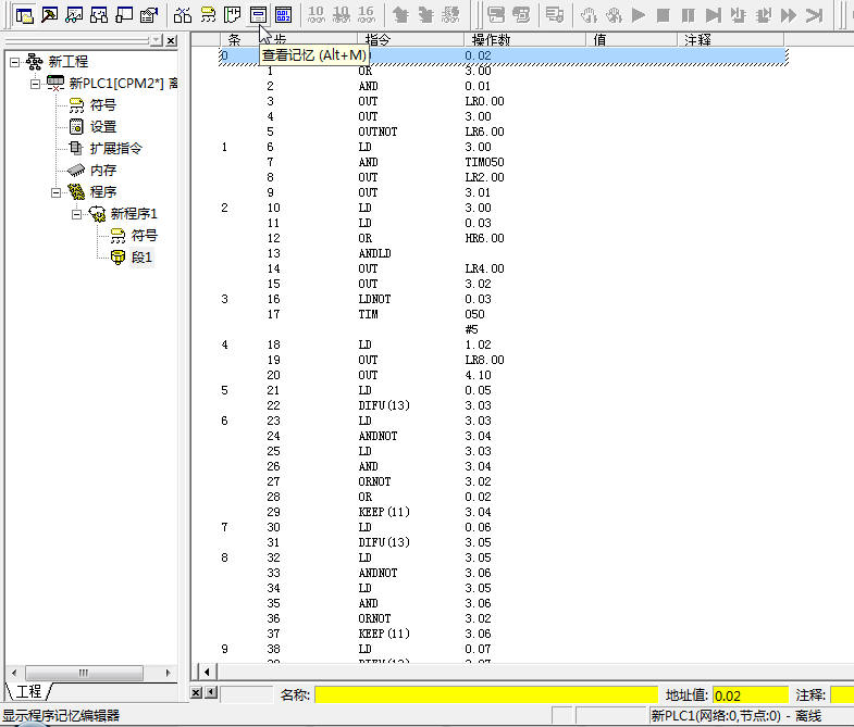 請教高手:CX-programmer7.3如何用助記符來編寫程序。我使用梯形圖可以,但不會用助記符來編寫,請高手指點。