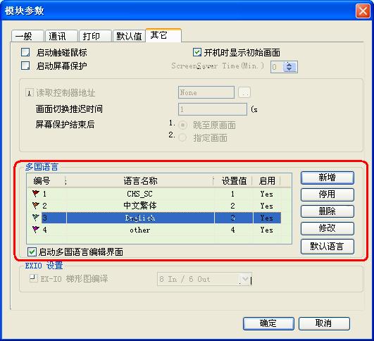 然后在【其他】頁面,設定三種語言的“編號”和“設定值”,并將其啟用。這樣就設定完了。