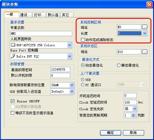 首先在screen editor 里面打開【選項】--【設定模組參數】--【一般】里面設定系統控制區,建議設定為內部地址以便于控制(如S0),將地址長度設定為8(必須是8,因為第8字才能控制語言切換,長度短了就沒有該功能)。