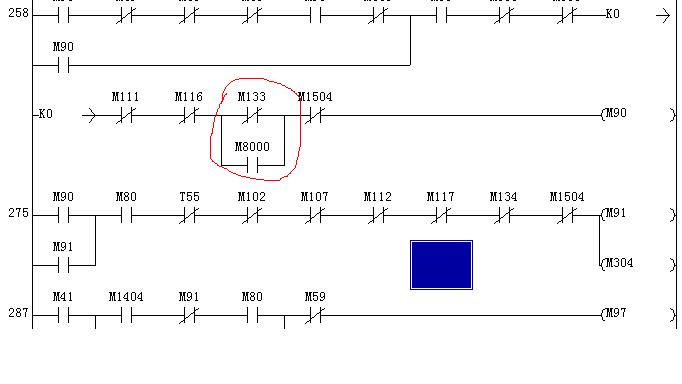 2圖疑惑:既然M8000是上電運(yùn)行后常ON觸點(diǎn),你還將其他觸點(diǎn)與之并聯(lián),又意義何在呢?