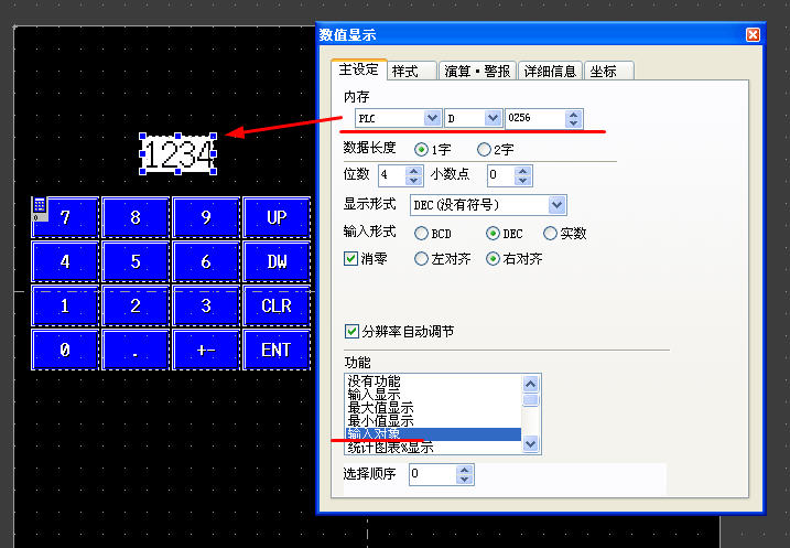 具體:選擇輸入模式/小鍵盤/選擇某一樣式小鍵盤/放置。  再選擇數(shù)據(jù)顯示/數(shù)字?jǐn)?shù)據(jù)/內(nèi)存:D256  分區(qū)編號:0    類型:輸入目標(biāo)/放置。但下載至觸摸屏且與PLC 相連后,不能輸入數(shù)據(jù),不知問題出在那里?請高手指點一或二。