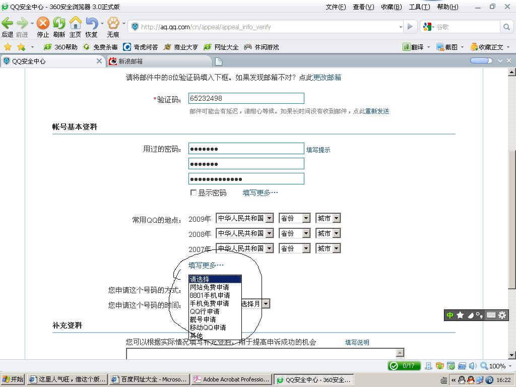 1,在申訴的有一項步驟里,填寫QQ號的申請方式,我是在QQ的登錄界面點擊“注冊新賬號”來申請的(大致是這樣的,8,9年前的事了)請問這是屬于什么申請方式?