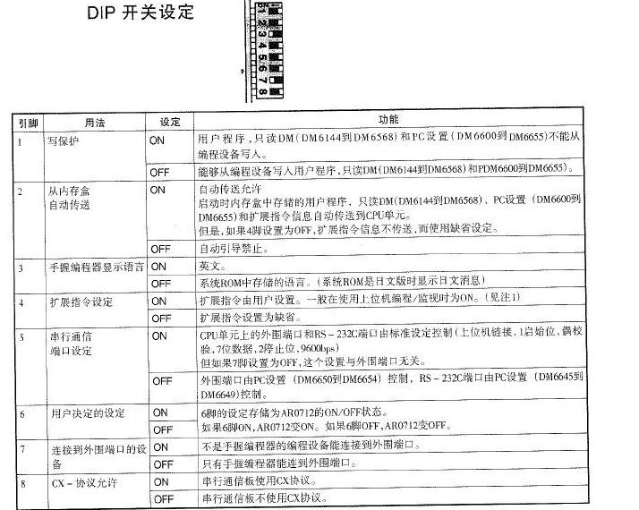 請問guochunyi歐姆龍CQM1HPLC上的DIP的功能?謝謝。[