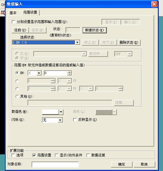 2:數值設置按鈕中有一項“范圍設置”如果超出范圍則顯示對應超出警告畫面。
