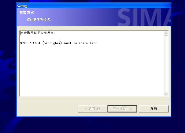 在安裝S7-300 的編程軟件V5.4是顯示這個(gè)提示,不知道是什么意思。應(yīng)該怎么解決。請(qǐng)高手指教