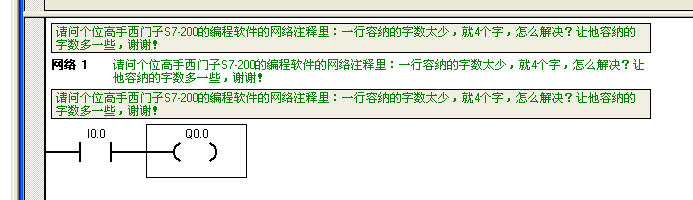 請問個位高手西門子S7-200的編程軟件的網絡注釋里:一行容納的字數太少,就4個字,怎么解決?讓他容納的字數多一些,謝謝!