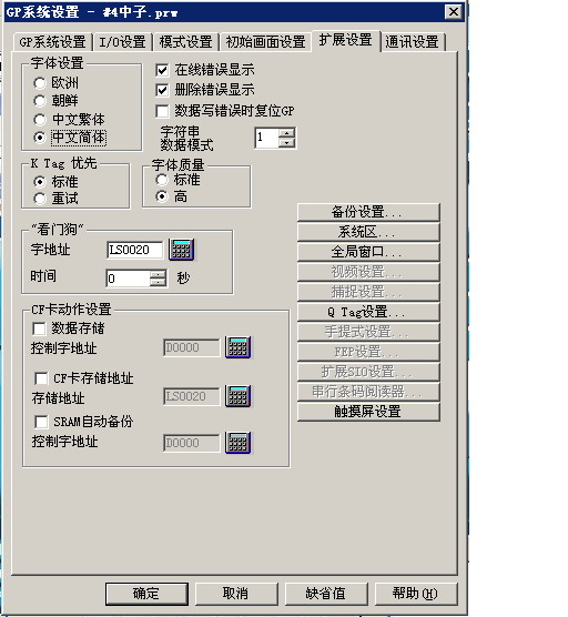 GP系統畫面打鉤了,沒有用,不是所有漢字不能顯示,部分漢字,英語顯示正常。有的顯示不出來的基本就是亂碼了,在編輯器上打開任何一個畫面,漢字顯示都是正常的,下載到觸摸屏上就不行了