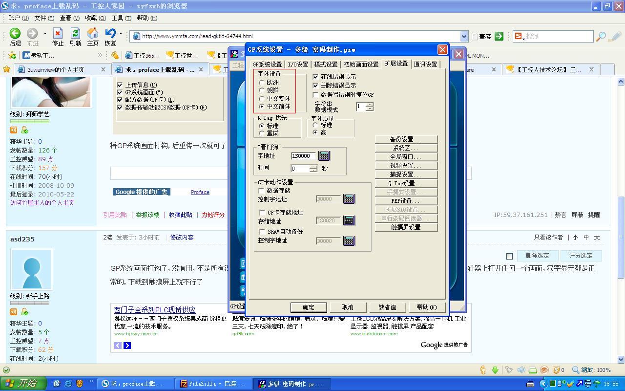 小弟初學proface,用GP-pro/pb3  7.27中文版下載程序正常,無亂碼;但將程序傳到另外一個同型號的觸摸屏后,漢字顯示不正常,有亂碼,PROFACE型號為 GP37W2,請各位大俠給予幫助,謝謝