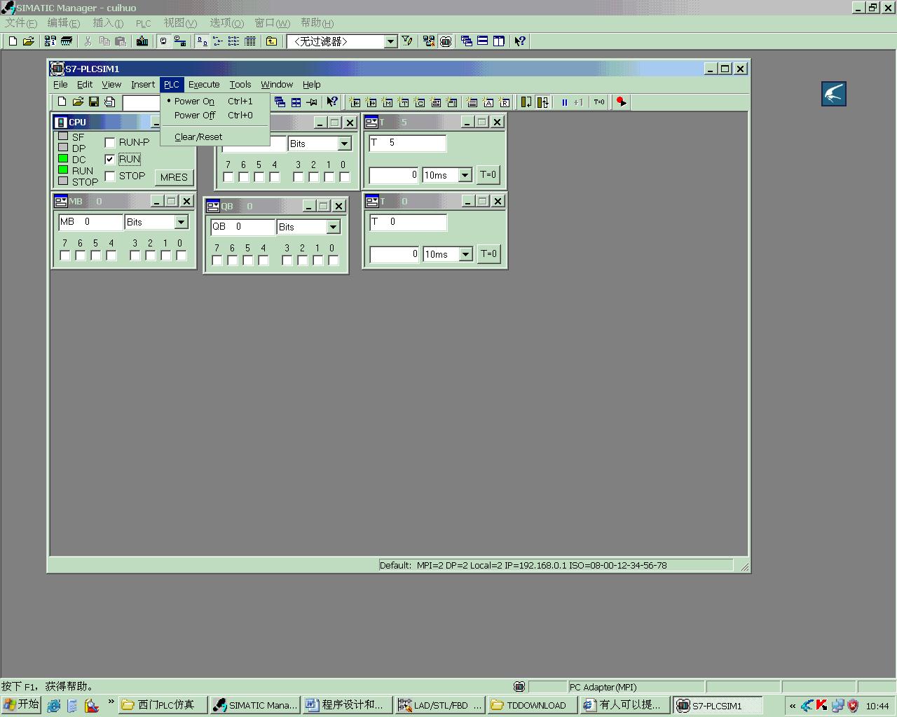 引用引用第317樓fire51于2009-06-11 17:23發表的 :剛才又試了下,一般情況可以了,還不知道如何仿真通訊。要是有一套實物的PLC 就好了啊