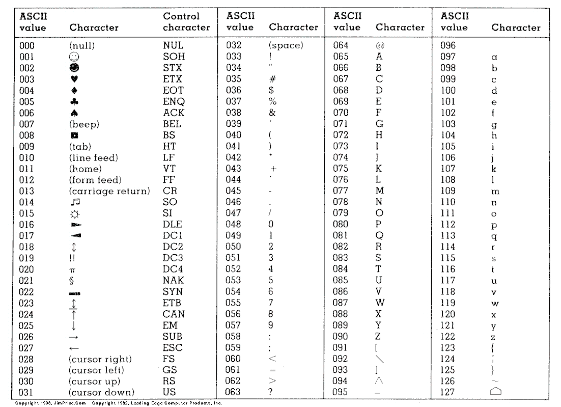 [post] ASCII對照表[/post]