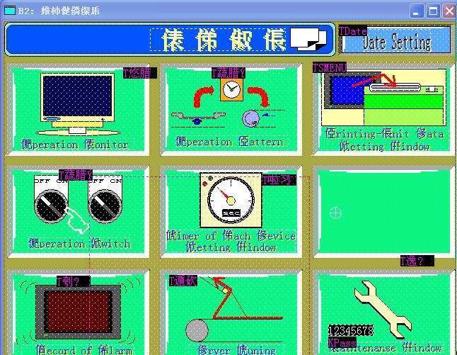 設備是進口的吧,這是因為觸摸屏編程時使用的不是中文簡體,改觸摸屏設置是沒用的。程序上載后,用一個內(nèi)碼轉換工具(金山快譯或南極星)試試。但程序內(nèi)文字你還是無法編輯的。