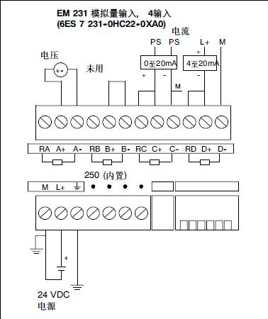 以上那個是接線圖,電流和電壓的接法不是一樣的。樓主你的模擬量的導線要用屏幕線,你可以用萬用表測量一下壓力開關輸出的電流多大,我記得EM231模塊是要設定DIP開關(在24V電源這一側的),一共有六個吧。具體怎么設定看一下手冊。