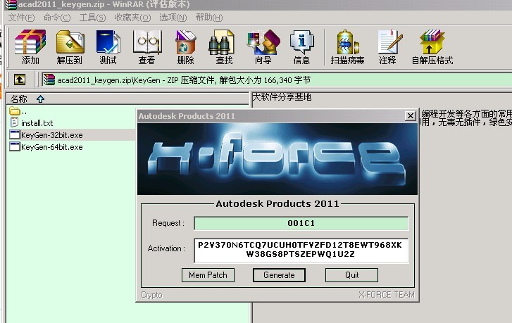 樓主只要打開安裝好的2011軟件(第一次打開就需要注冊)。系統會提示需要注冊(許可證),你就打開你貼圖上的注冊機。將使用ctrl+C;ctrl+V進行,也可以手動鍵入數據碼。