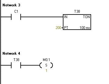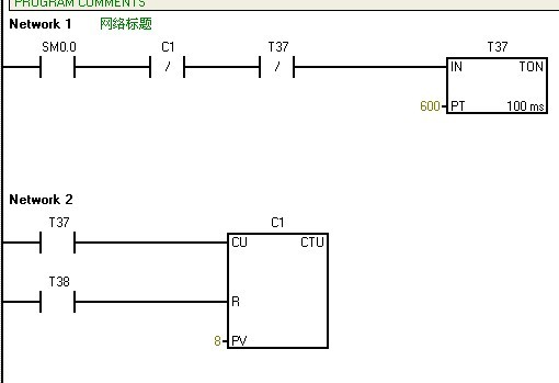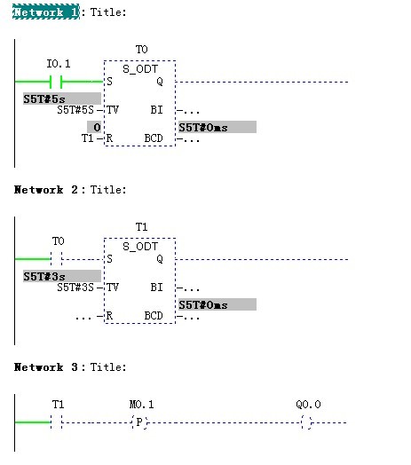 2. T1計(jì)時(shí)時(shí)間到為ON時(shí)的那個(gè)掃描周期內(nèi)就將T0復(fù)位掉,所以T0、T1都在此時(shí)斷開(kāi)無(wú)法閉合。