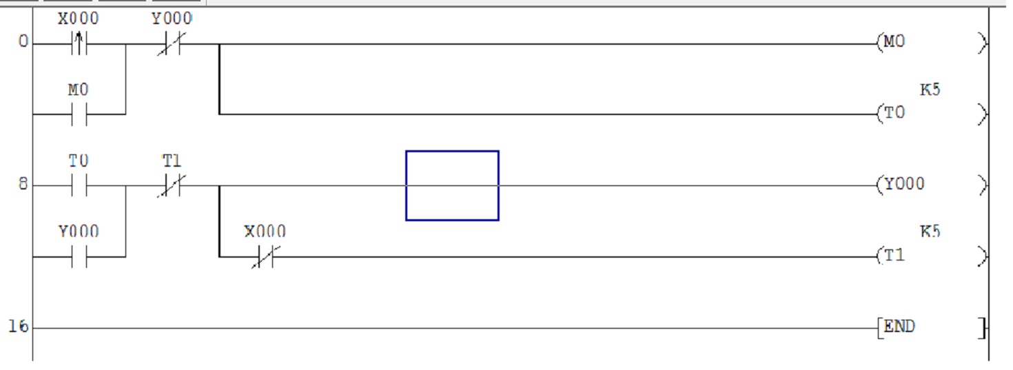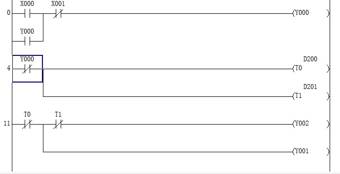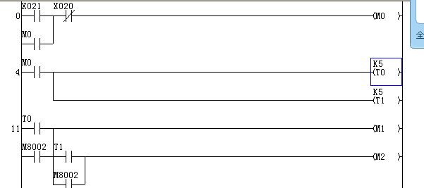 這個問題是否可以這樣理解:動斷延時的意思是當(dāng)定時器線圈得電延時指定時間后,它的所有邏輯觸點(diǎn)的極性置反。以8樓的梯形圖為例。當(dāng)PLC啟動后,首先T0;T1得電(延時0.5秒動作)的同時Y2;Y3也同時得電,延時0.5秒后Y2;Y3同時失電。當(dāng)然PLC的實(shí)際工作過程是自上而下,自左而右的掃描方式進(jìn)行的。嚴(yán)格地講8樓的梯形圖還是不夠編的嚴(yán)緊,可能是一個筆誤。要達(dá)到這樣的功能用一個定時器也可以了。