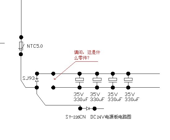 一臺S7-226CN   DC24電源,誤接入220V交流電損壞。檢查后,發(fā)現(xiàn)電源板中有以下零件損壞:T3.15A圓形保險,SJ93貼片肖特基二極管(封裝形式5025規(guī)格)。還有個零件看不清楚型號,只好畫個草圖,請教各位幫忙看下。在此先謝過。