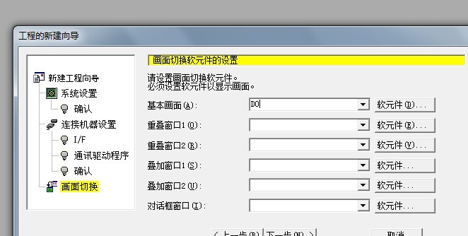 我試了一下,(設置基本畫面(A)的軟元件為D0)是什么意思。是用切換畫面的開關嗎,我想M1接通時切換到畫面一,M2接通切換到畫面二,M3接通切換到畫面三,哪位老師能再指教一下嗎,沒搞明白,能做一個簡單的例子發絕給我嗎,我的PLC這三菱Q的,屏為三菱GT1175