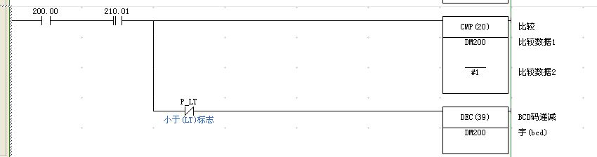 引用引用第2樓平凡人生于2010-12-31 17:06發(fā)表的 :如果是DM200小于1,那再減1不是會成負數(shù)嗎?這段程序中,DM200的內(nèi)容是用來設(shè)置定時器,程序的本意是保證DM200中的數(shù)據(jù)大于1,小于50.