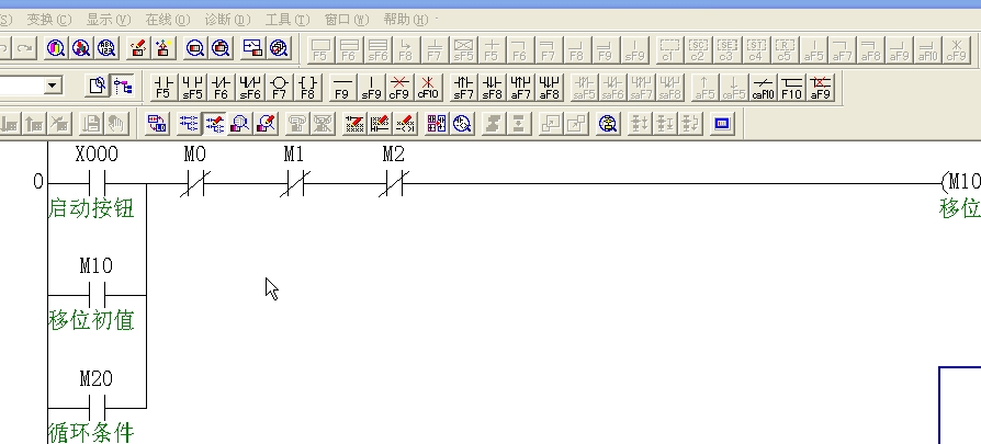 點“梯形圖邏輯測試起動\結束”圖標,或者點【工具】、再點選【梯形圖邏輯測試起動】;