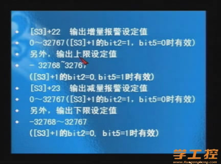 大家都知道指令PID的參數(shù)S3------S3+6的意義和用法。S3+7書上說是PID指令運行內(nèi)部占用,但我看過好幾個鬼仔編的程序都用上了。。。請教那高手解釋下S3+7的意義。。。。謝謝。。。。