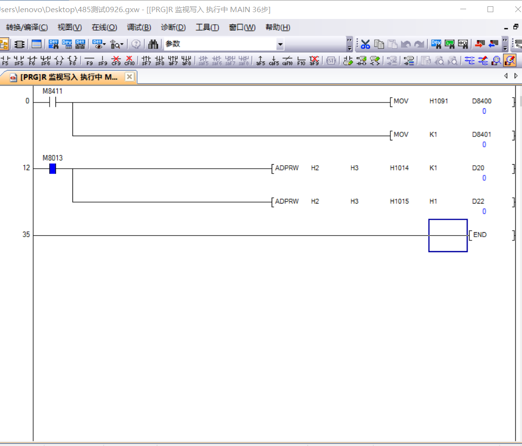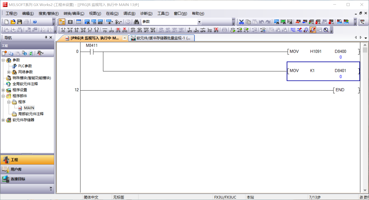 請問大蝦們,FX3U-485ADP-MB這個模塊,調試程序如附件,之前還可以通訊上,現在怎么弄D8400的值都是0。請給點指點!!!跪謝。!