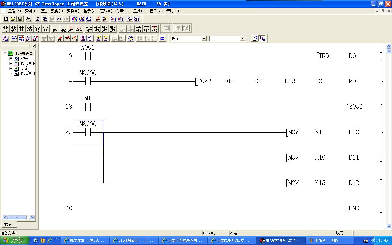 然后再用接點AND=比較指令,分別是年、月、日、時、分、秒的數據與以上寄存器進行比較,
