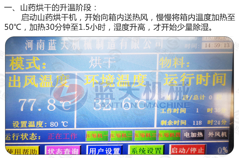 小型山藥烘干機使用技術要求: