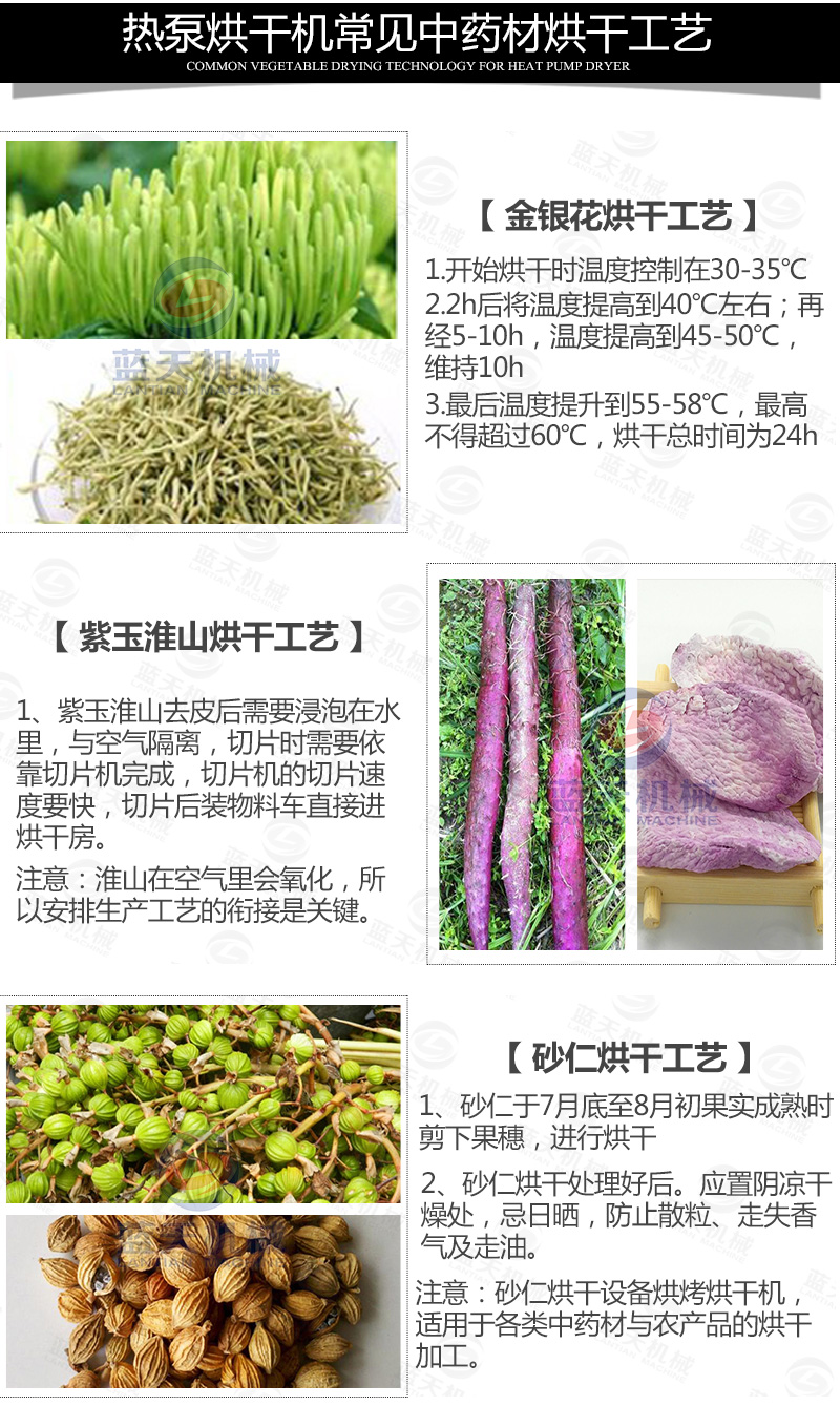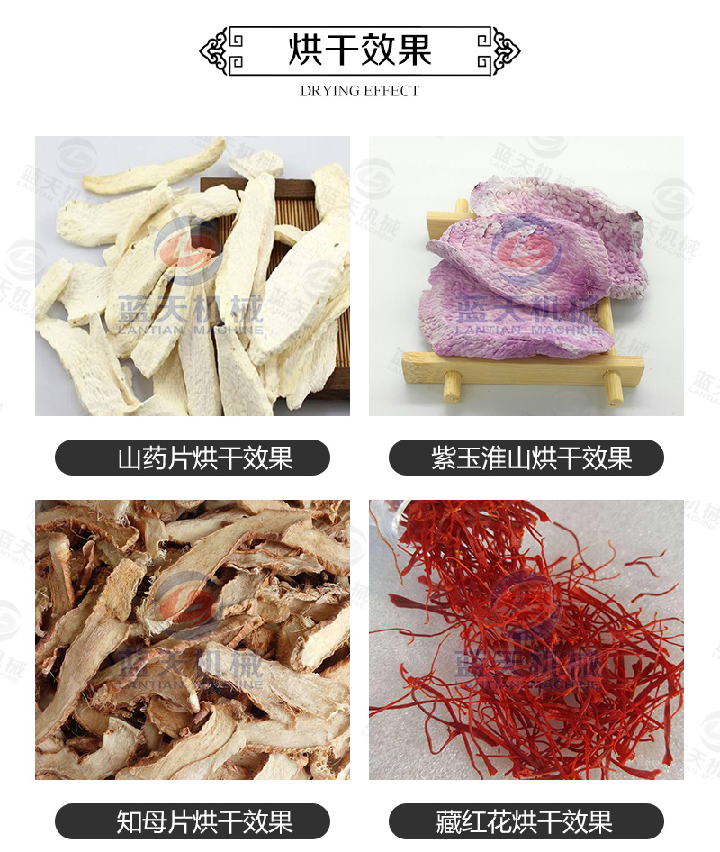 4、小切片烘干時,山藥烘干機的溫度不能太高,一般控制為70-90℃,時間設置為6-7個小時。大切片烘干時,山藥烘干設備的溫度設置要高點,一般控制在80-100℃,烘干時間為9個小時。碎切片烘干則溫度要求較低,烘干時間為5個小時,溫度設置為60-80℃。