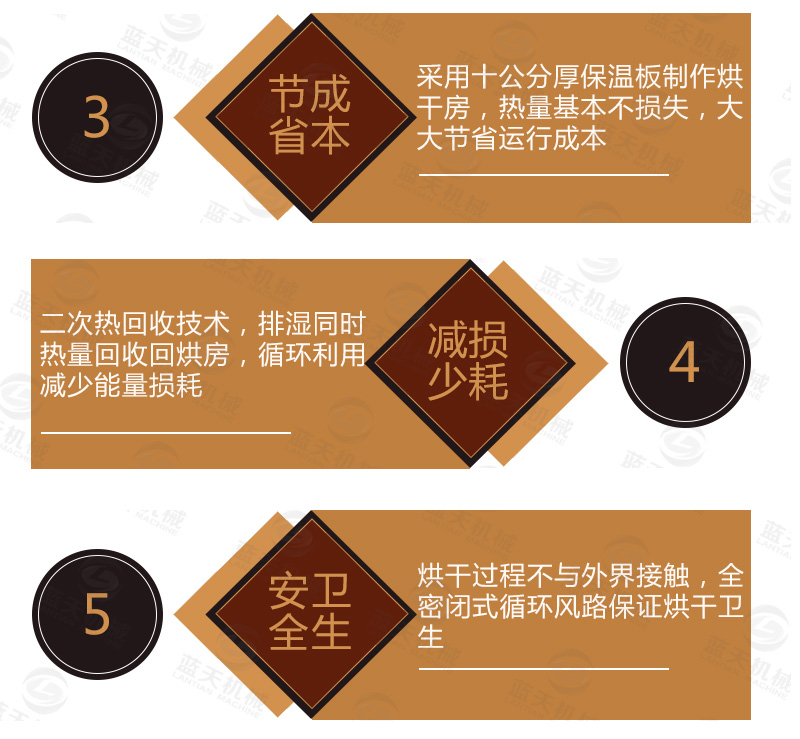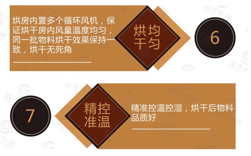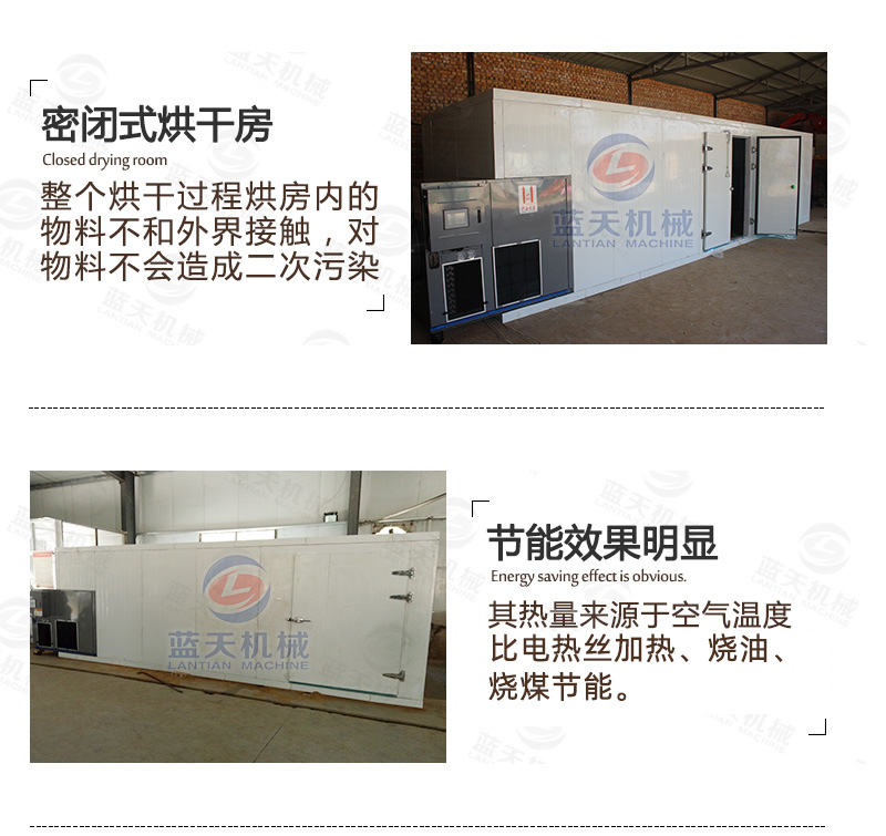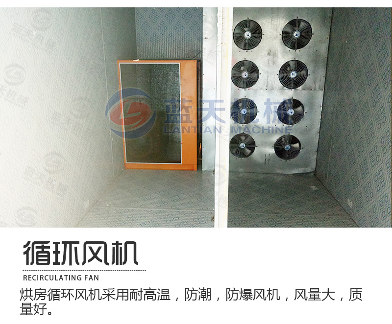 5、小型山藥烘干機空氣循環系統采用風機循環送風方式,風循環均勻效率高。風源由循環送風電機(采用無觸點開關)帶動風輪經由加熱器,而將熱風送出,再經由風道到山藥烘干機內,再將使用后的空氣吸入風道成為風源再度循環,加熱使用。確保室內溫度均勻性。