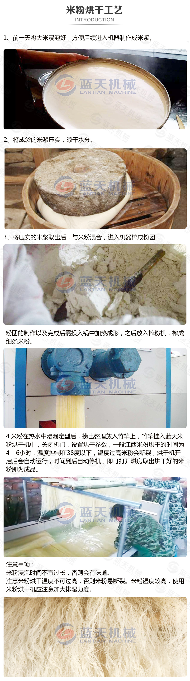 1、低溫,增大排濕:溫度35℃,烘干時(shí)間大約2-3小時(shí)。前期米粉烘干設(shè)備的烘干溫度不宜太高,否則米粉容易斷裂。米粉濕度較高,應(yīng)注意增大排濕力度。