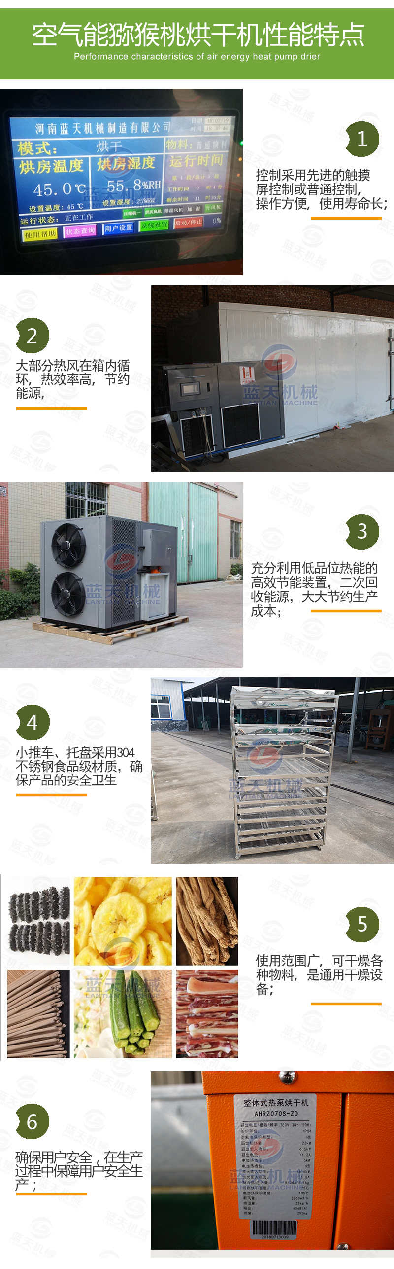 獼猴桃烘干設備特點: