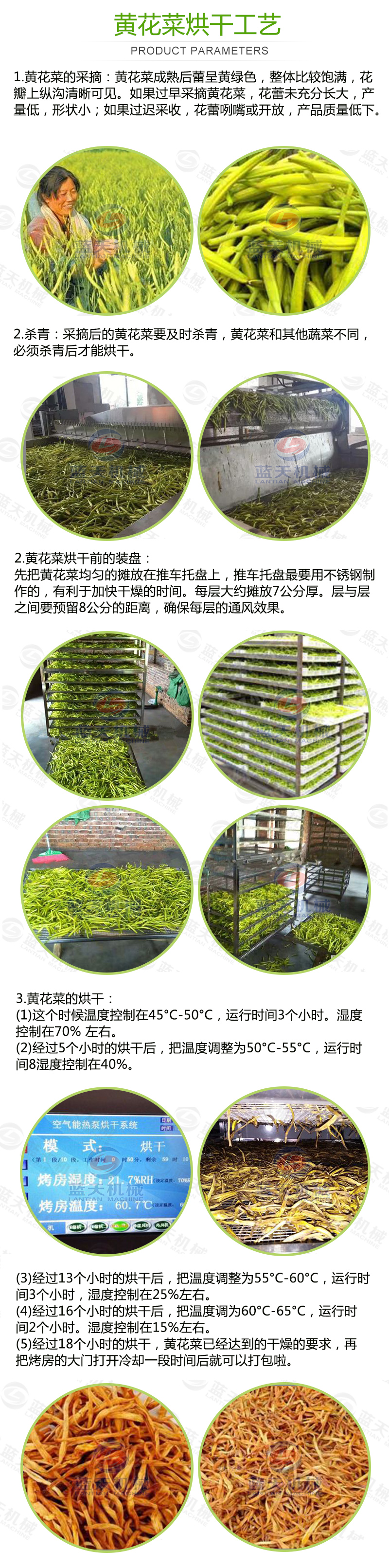 黃花菜烘干機烘干工藝:
