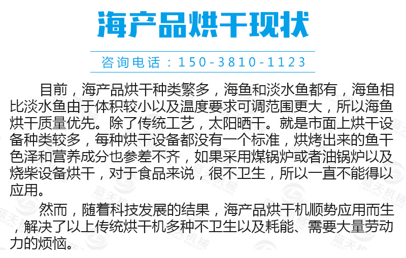 海產品烘干機設備不僅可用于烘干魚、蝦、海帶、殼類等海鮮產品,還廣泛應用于農業、工業、食品、化工等行業,能滿足現有80%以上的原材料的干燥烘干和深加工。